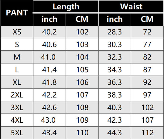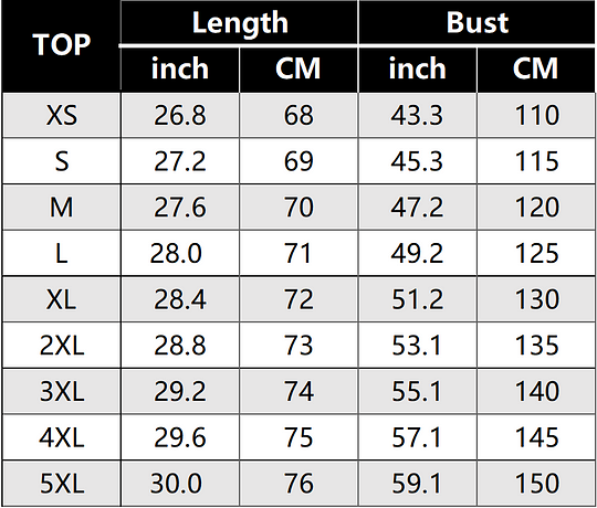 SIZE CHART: